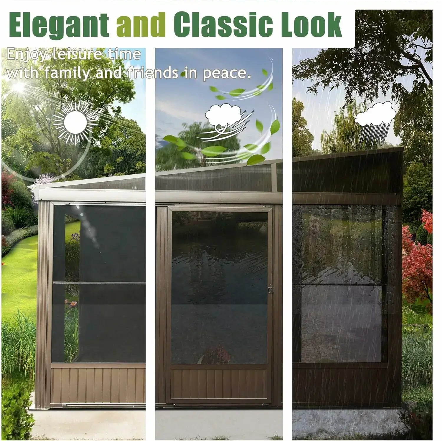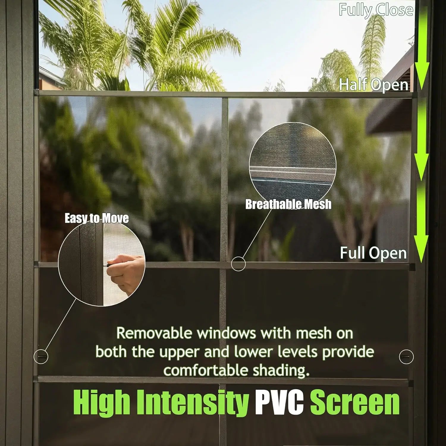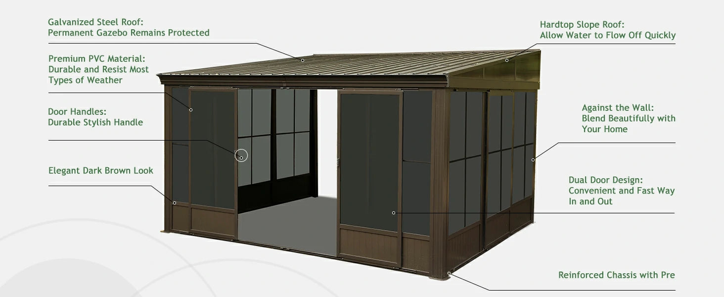 Galvanized Steel Roof; Aluminum Frame; PVC Screen
