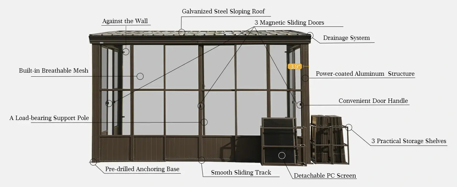 Galvanized Steel Frame and Roof; Detachable PC Windows