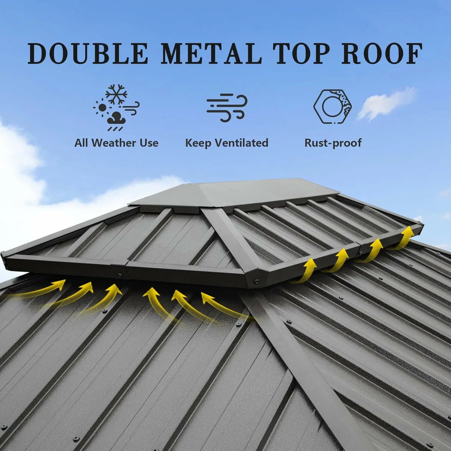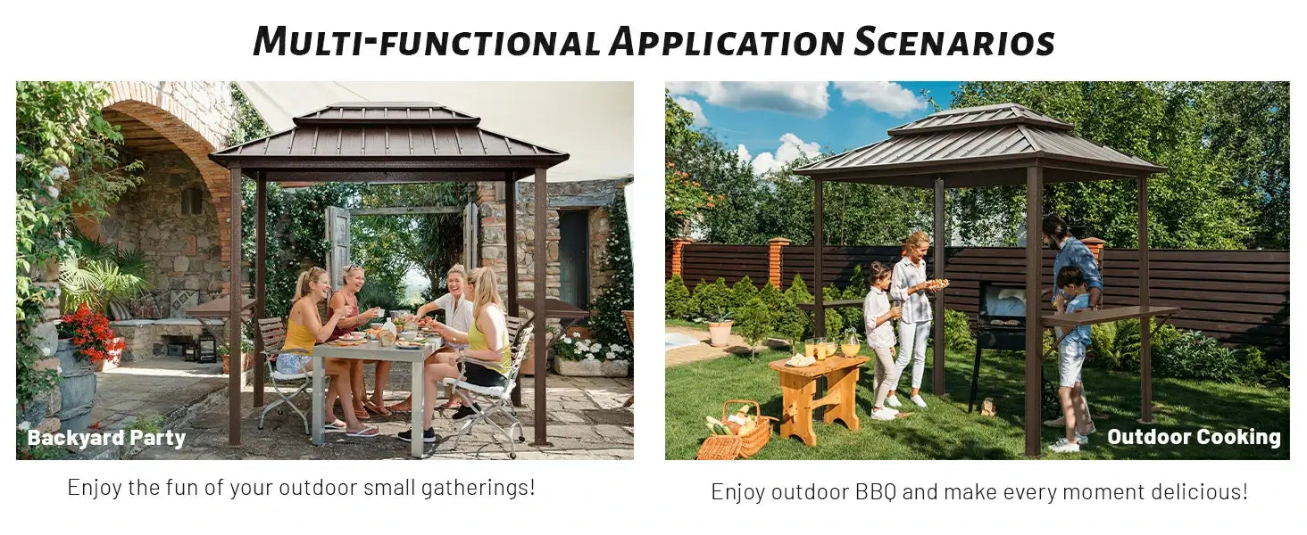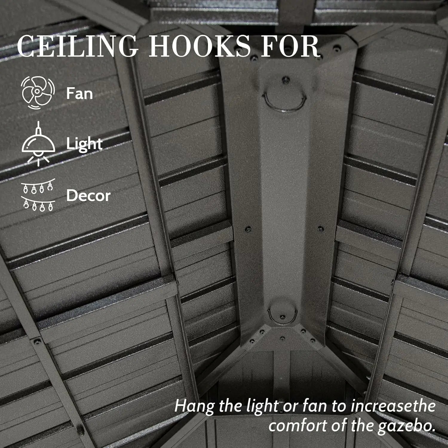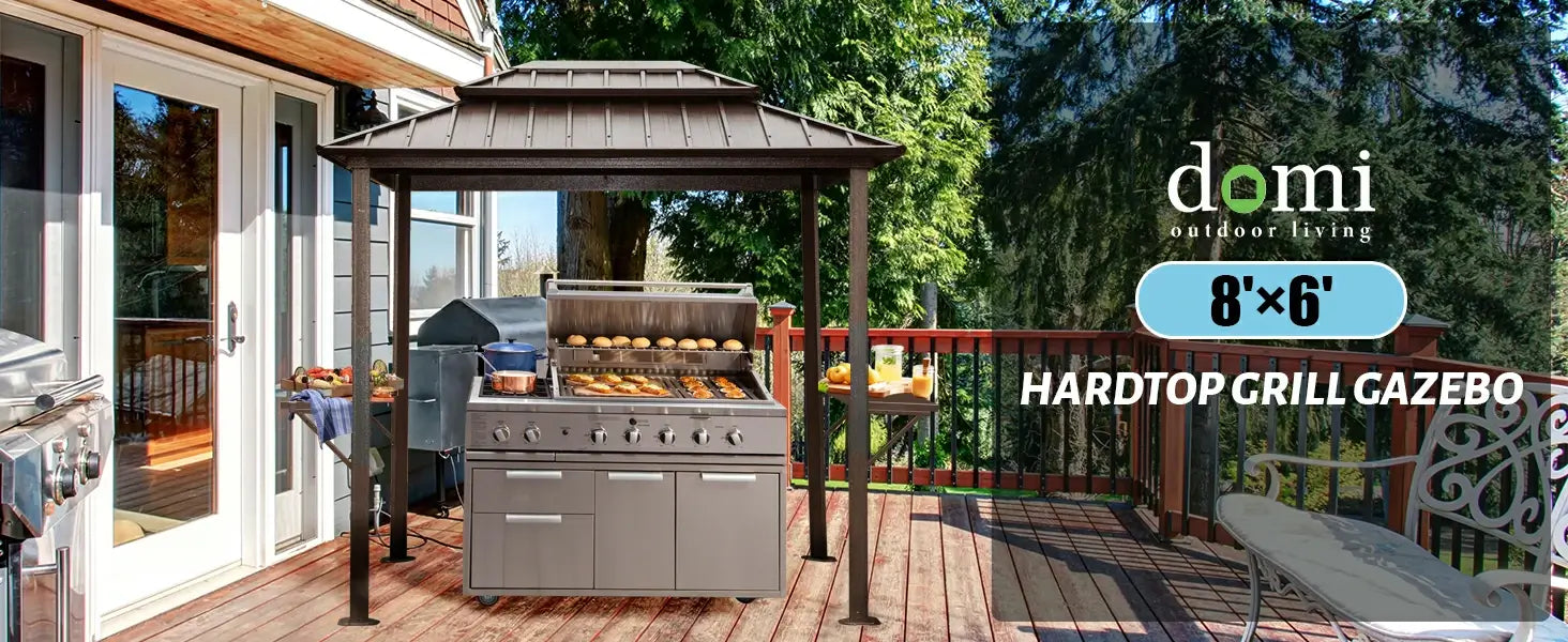 With its double top design and integrated hook, the Domi Outdoor Living Grill Hardtop Gazebo allows you to customize your outdoor space effortlessly. Drape string lights, lanterns, or a fan on these hooks, let your prowess shine as you barbecue by their radiant looks.