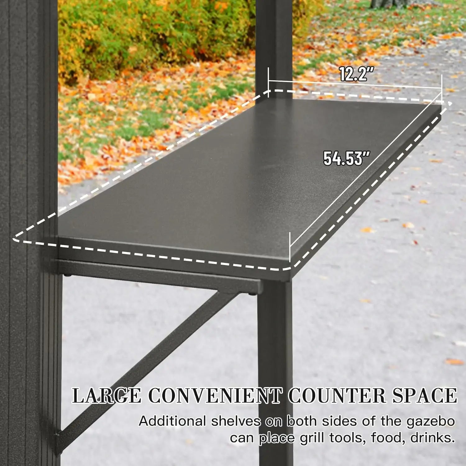 With the Domi Outdoor Living Grill Gazebo, convenience is at your fingertips. This intelligently designed gazebo features built-in two shelve serving tables, allowing you to effortlessly prepare and serve your delicious grilled creations. No more juggling plates and utensils or searching for a suitable space to place your ingredients. The shelve serving table provide ample room for all your cooking essentials, ensuring a seamless and enjoyable grilling experience.
