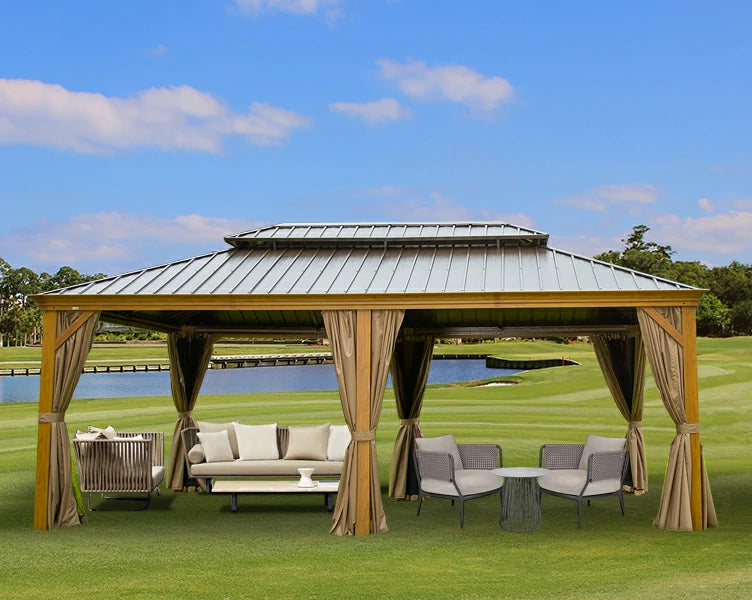Hardtop Gazebo Wood-Looking with Drainage Gutters
