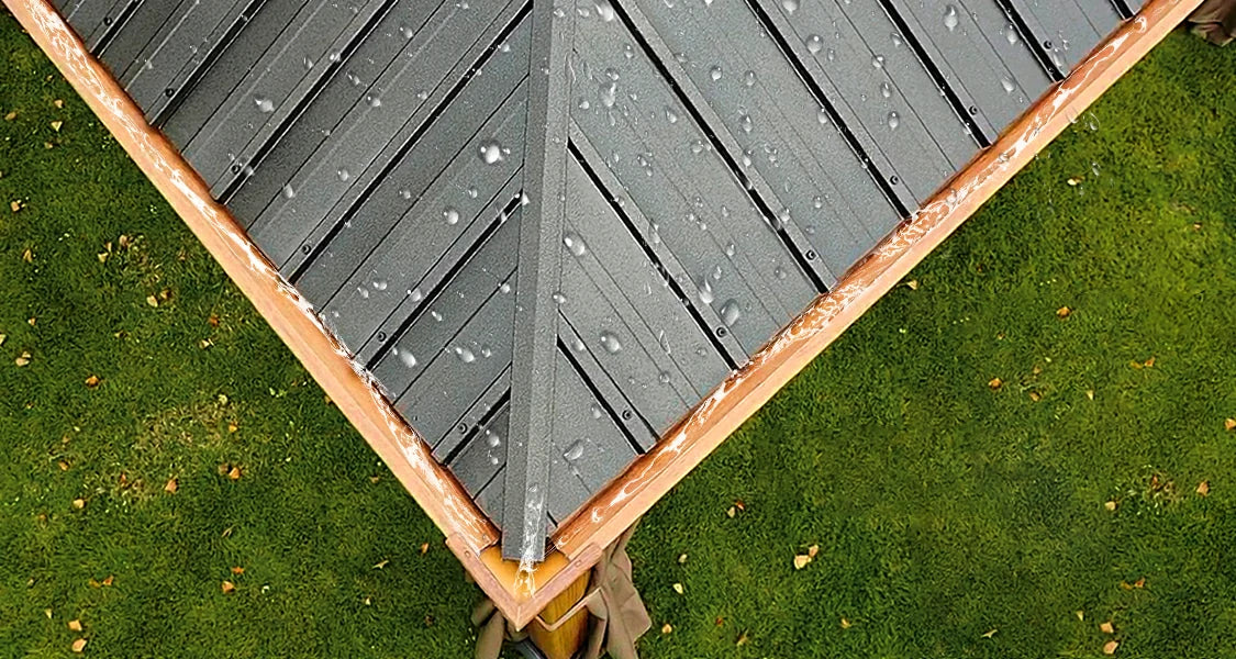 Unlike traditional gazebos, Domi gazebo pavilion is made with a sturdy metal roof and aluminum frame that provides superior protection from the elements. The roof's distinctive drainage channel design efficiently collects rainwater, directing it to flow down the columns. You won't have to worry about rain ruining your outdoor gathering