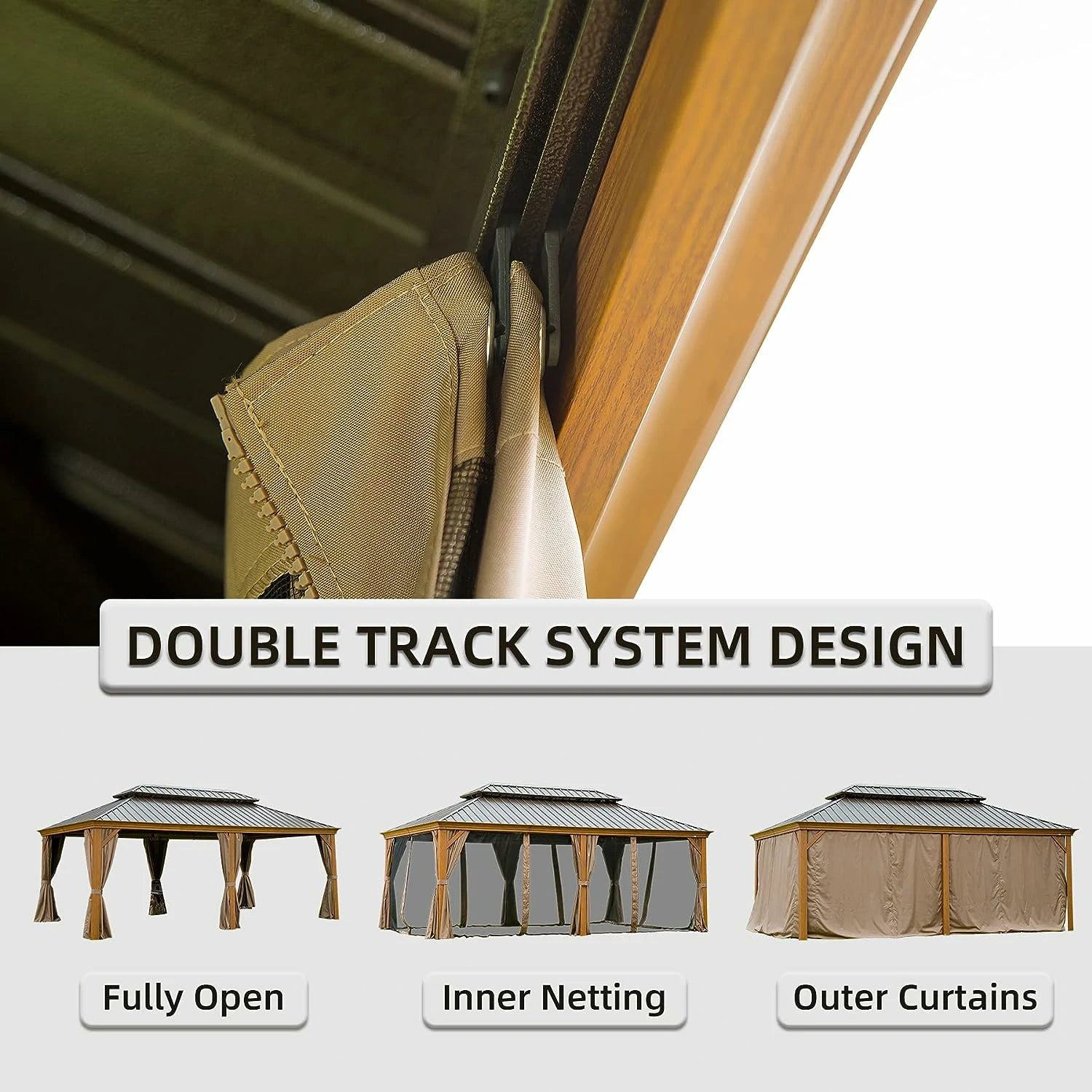 The double top design is good for air circulation, and insulates the gazebo from heat and cold, making it more comfortable to use in various weather conditions.