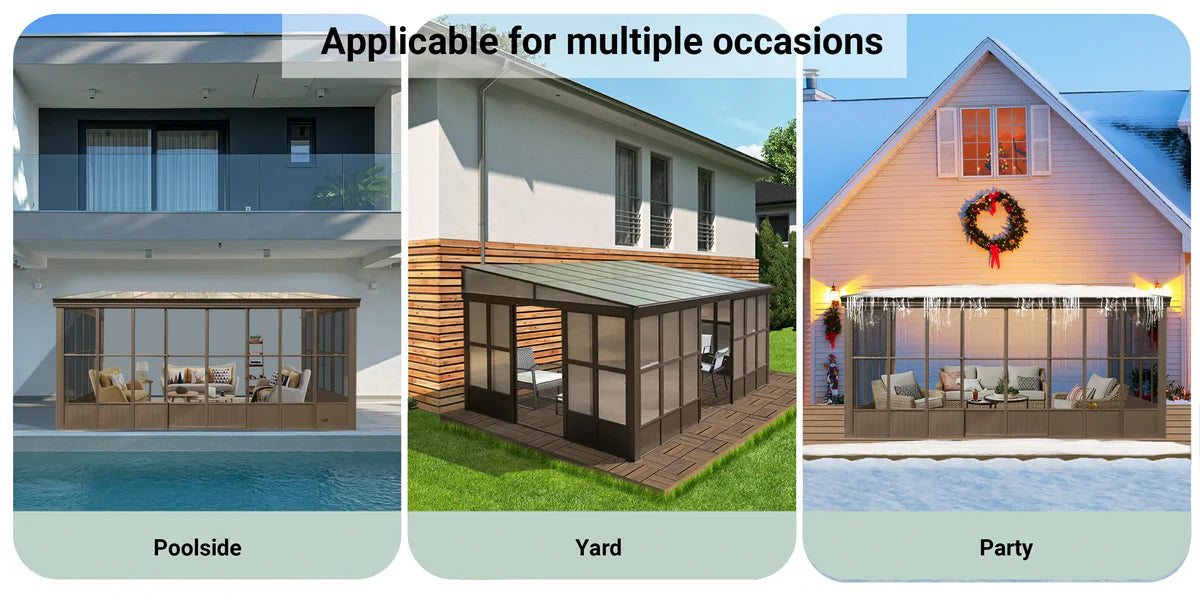 Crafted with a robust aluminum frame and high-quality polycarbonate roof and windows, the Domi Outdoor Living Sunroom ensures exceptional durability and longevity. The materials are weather-resistant, capable of withstanding various climatic conditions, ensuring that your investment lasts for years to come.